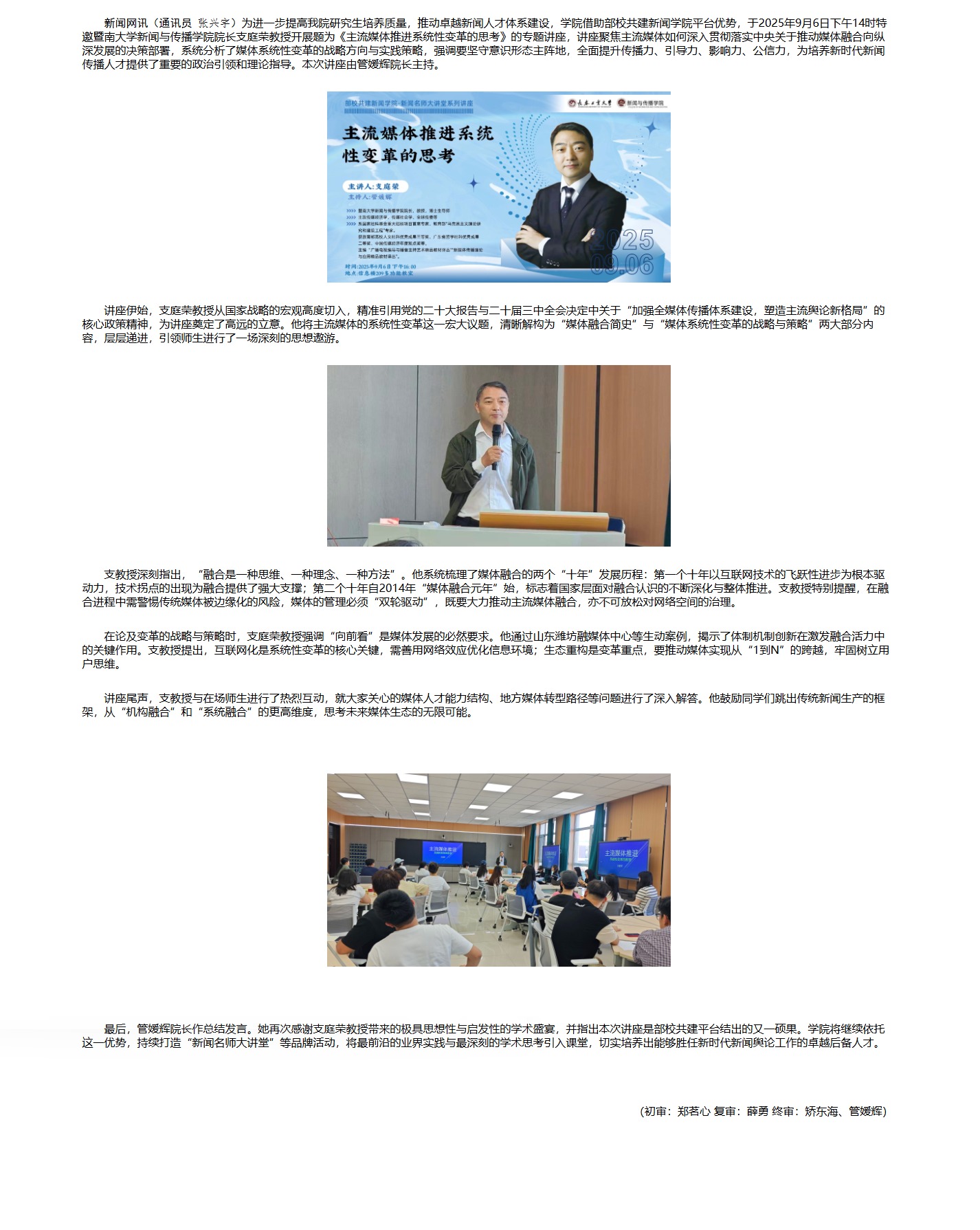 AC米兰官方网站 部校共建新闻学院——新闻名师大讲堂系列讲座《主流媒体推进系统性变革的思考》