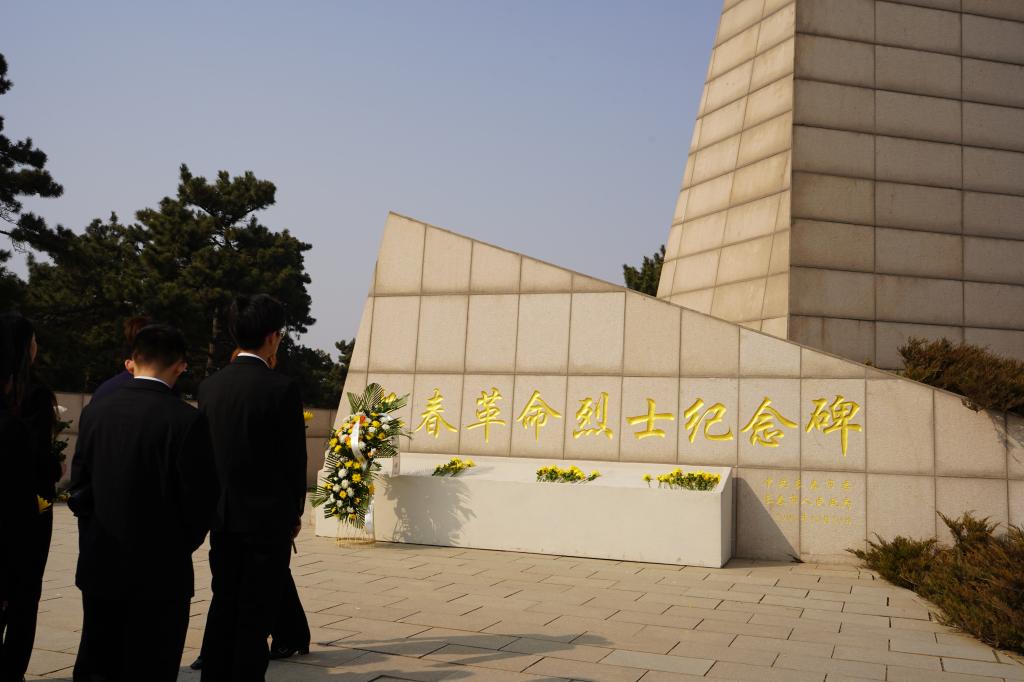 崔悦在革命烈士纪念碑前向同志们提出三点希望:第一,坚定理想信念。新时代青年要通过实践和理论学习坚定理想信念,真正的做到对党忠诚。第二,提升能力素质。希望同志们在大学期间能够做好分阶段规划,积极参与第二课堂和校园文化活动,做到“德智体美劳”全面发展。第三,保持奋斗精神。习近平总书记说过,“奋斗是青春最亮丽的底色,行动是青年最有效的磨砺。”同志们要认真完成每一项任务,争做有理想、敢担当、能吃苦、肯奋斗的新时代好青年。