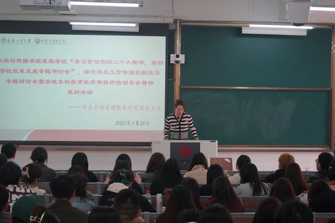 新闻网讯(通讯员 韩昀彤)为全面落为全面学习贯彻学校“学习贯彻党的二十大精神,推动学校改革发展专题研讨会”、“深化学生工作体制机制改革专题研讨会”精神,落实学校“综合改革年”和“本科教育质量提升年”的目标任务,紧密结合本科教育教学审核评估工作,进一步提高学生骨干整体素质,增强学生骨干队伍凝聚力,充分发挥学生干部在大学生思想政治教育的桥梁和纽带作用。3月22日,AC米兰官方网站召开学生干部转变管理服务作风建设动员大会,学院党委副书记周巍以及全体辅导员、学院所有学生骨干100余人参加了会议。会议由团委负责人崔悦主持。
