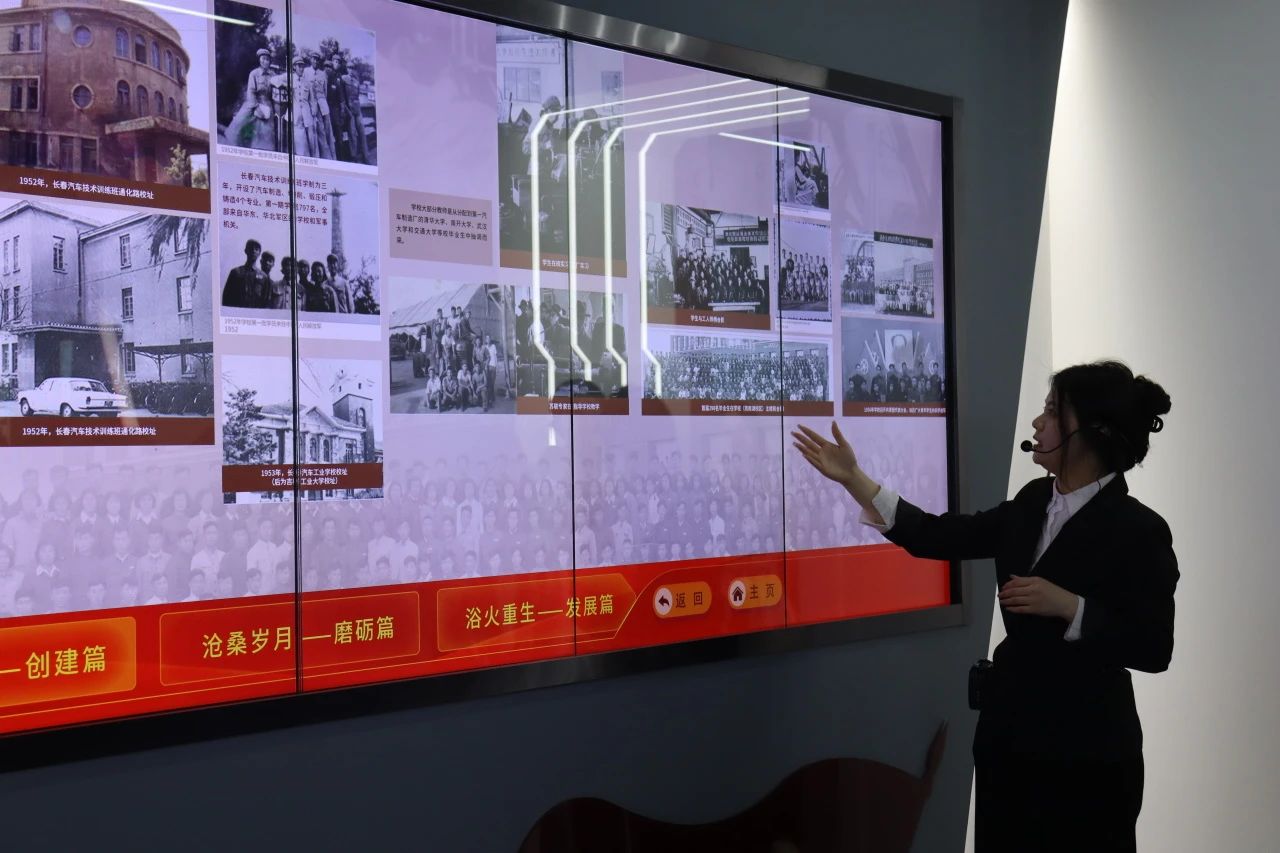 电讲解员李阳洋向在场同学们生动讲述了长春工大从新中国汽车工业人才的摇篮向现代综合性高等学府的演变历程,带领大家跨越时空,重温工大这不平凡的七十余年。校史馆里,一幅幅照片、一段段文字、一件件实物展品,李阳洋讲解员通过五大板块,带领同学们领略了长春工大七十年来的风云变幻,引发了同学们全新的体验与感悟。AC米兰官方网站的风采深深地吸引了同学们,同学们从校史馆中了解到了长春的汽车发展史,也对这座久经沧桑的大学有了更加深刻的了解。同学们感慨学校伟大的光荣历史、惊喜技术创新带来的全新体验、自豪前辈们做出的非凡成就。