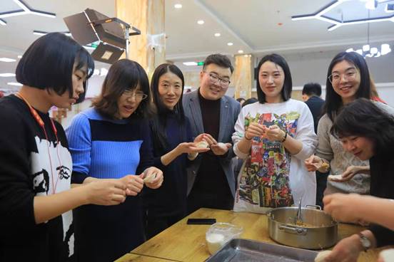 迎新年联欢会在研究生会自制的抖肩舞视频中拉开了帷幕,精彩的开场舞点燃了现场的氛围。计算机基础教学中心的老师们带来了歌舞剧《我的祖国》尽显飒爽英姿;数字媒体系老师诗朗诵《中国梦》和舞蹈《BABY SHARK》展现双面风采;广播电视编导系老师原创小品《忙不忙》逗得满场捧腹大笑;学院办公室老师和研会歌曲大联唱《歌唱祖国》引起全场热唱。各类节目诙谐幽默、精彩纷呈,充分展现了老师们和同学们的多才多艺。同时还穿插各种趣味性互动游戏,大家热情参与,配合默契,赢来了观众不断的掌声和呼喊声。抽奖活动更是激情四射,颁奖老师每报出一个中奖号码,现场便爆出一阵欢呼。整场活动精彩纷呈、掌声不断,洋溢着欢乐的气氛。联欢会最后一项活动包饺子,更是将联欢会再次推向了高潮,热气腾腾的饺子让在场的老师和同学们感受到了浓浓的团圆的味道。