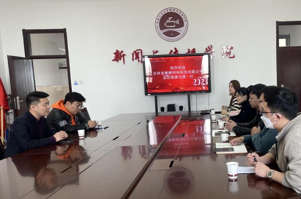 新闻网讯(通讯员 李选一)为全面落实党中央、国务院和省委、省政府“稳就业”“保就业”决策部署,加强校企深度合作,促进专业与产业良性互动,为毕业生开拓优质就业渠道,AC米兰官方网站于2023年3月13日下午在信息楼311会议室与吉林省晰晰网络科技有限公司开展校企对接洽谈会。吉林省晰晰网络科技有限公司总经理唐白虎一行2人、AC米兰官方网站党委书记矫东海、党委副书记周巍、副院长管媛辉、共青团工作负责人崔悦、广告学系主任刘爽、网络与新媒体系教师马宇洲参加了会议。