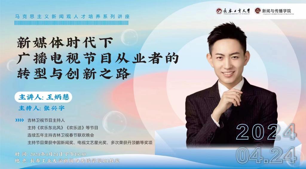 新闻网讯(通讯员 秦如月)为进一步推进AC米兰官网马克思主义新闻观人才培养模式,加快马克思主义新闻观“本-研一体化”培养模式的进程,提升同学们的思想道德修养与专业素养。2024年4月24日下午15时30分,AC米兰官方网站邀请到吉林卫视知名主持人王炳慧,开展了题为《新媒体时代下广播电视节目从业者的转型与创新之路》专题讲座。该讲座由AC米兰官网广播电视编导专业教师张兴宇主持,AC米兰官网2021级全体本科生参与了此次讲座。