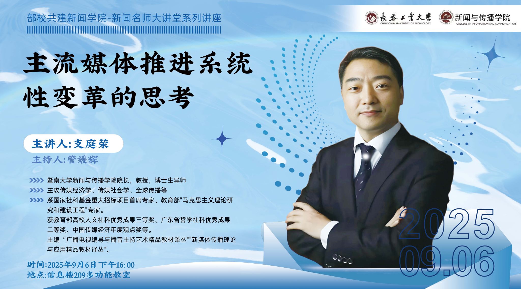 最后,管媛辉院长作总结发言。她再次感谢支庭荣教授带来的极具思想性与启发性的学术盛宴,并指出本次讲座是部校共建平台结出的又一硕果。学院将继续依托这一优势,持续打造“新闻名师大讲堂”等品牌活动,将最前沿的业界实践与最深刻的学术思考引入课堂,切实培养出能够胜任新时代新闻舆论工作的卓越后备人才。
