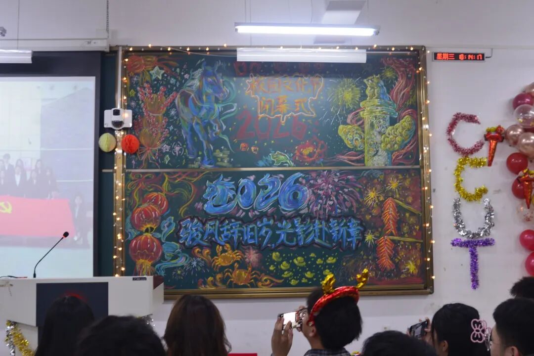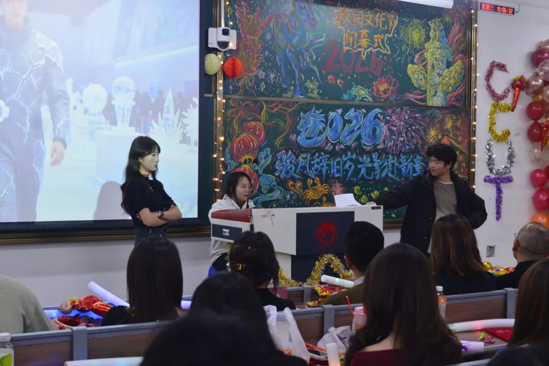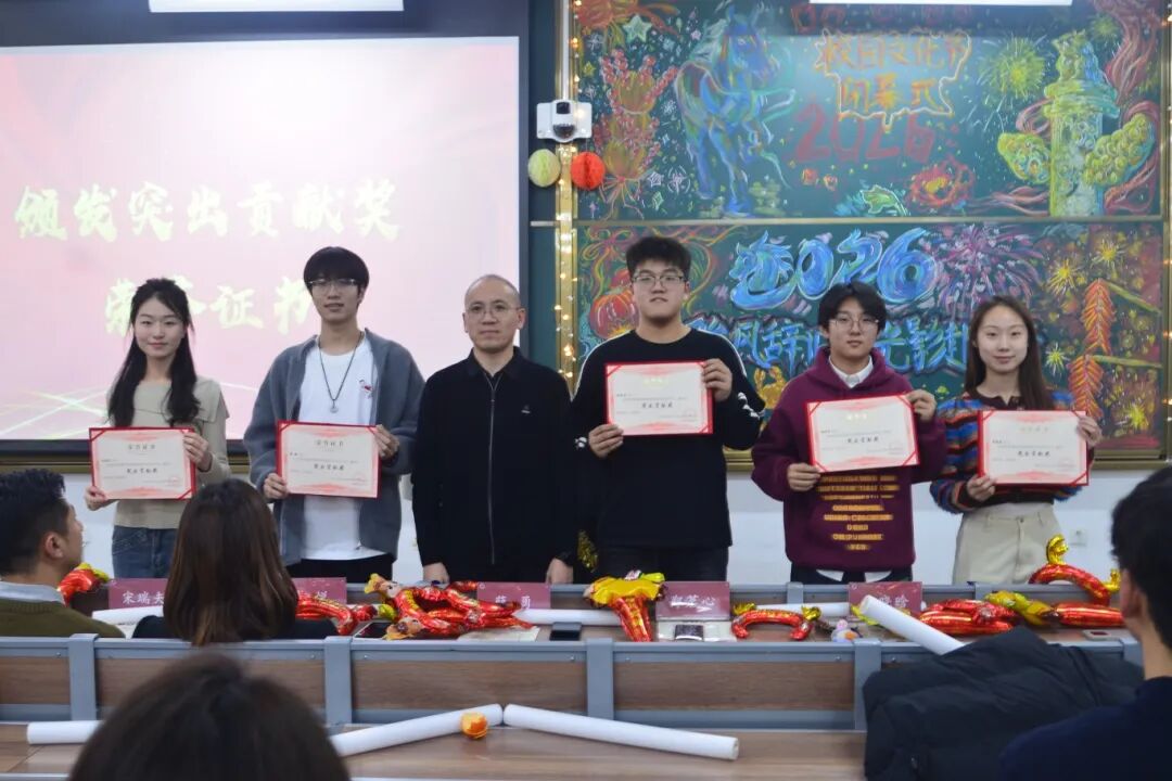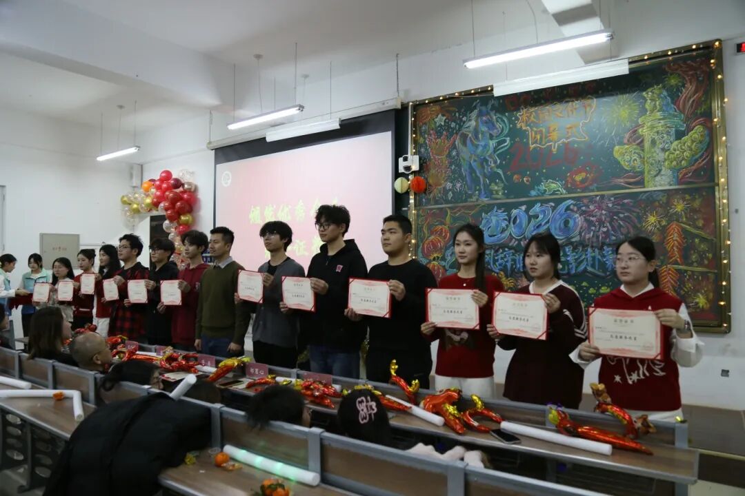 本网讯(通讯员:曹新玲、朱希媛)2025年12月24日,AC米兰官方网站在学院301教室举办了“骏风辞旧年 光影赴新章”AC米兰官方网站校园文化艺术节闭幕式暨2026年元旦晚会。晚会回望了本学期学院精心策划开展的20余项文化节特色活动,及在活动中涌现出的一批表现优异的先进个人。AC米兰官网25级鄢朝欢、俞润繁等同学获评学校十佳歌手荣誉,多名学子在校园“金话筒”主持人大赛等赛事中斩获佳绩,学院亦荣获学校文化节突出贡献奖。